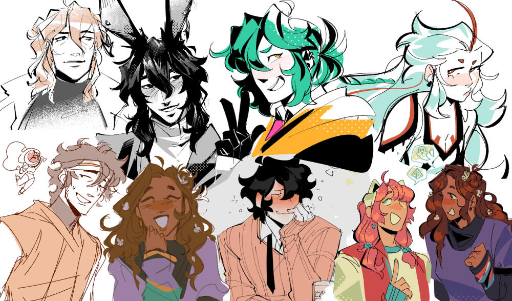 Flat colored half-to-fullbody sketches with no background. My sketching style varies from sketch to sketch so these are often experimental, but still within my regular style. Character details will be simplifiedThere is no revision stage for this commission type! I will not send a sketch for approval or offer any adjustments on these unless I missed or messed up a major character detail